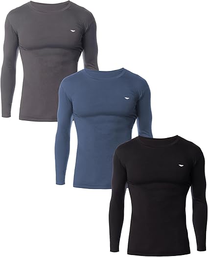 Men's 3 Pack Base Layer Long Sleeve Thermal Crew Neck Top | Soft & Lightweight Fleece Lined Shirts