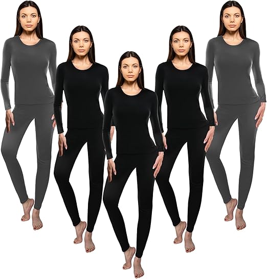 5 Set Women Thermal Underwear Sets Fleece Lined Long Johns Winter Warm Base Layer Top and Bottom for Cold Weather