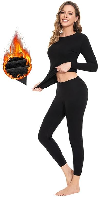 Thermal Underwear for Women, Long Johns Fleece Lined Set, Shirt & Pants, Base Layer w/Leggings/Bottoms Ski/Extreme Cold