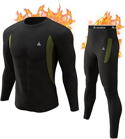 Long Johns Thermal Underwear for Men Skiing Winter Warm Hunting Gear Fleece Lined Base Layer Set Top Bottom
