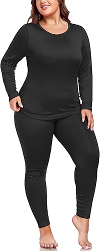 Women's Plus Size Thermal Underwear for Long Sleeve Fleece Lined Base Layer Top and Bottom Sets XL-5XL