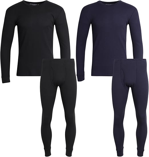 Men's Thermal Underwear Set - 4 Piece Waffle Knit Shirt and Long Johns - Base Layer Set for Men (S-XL)